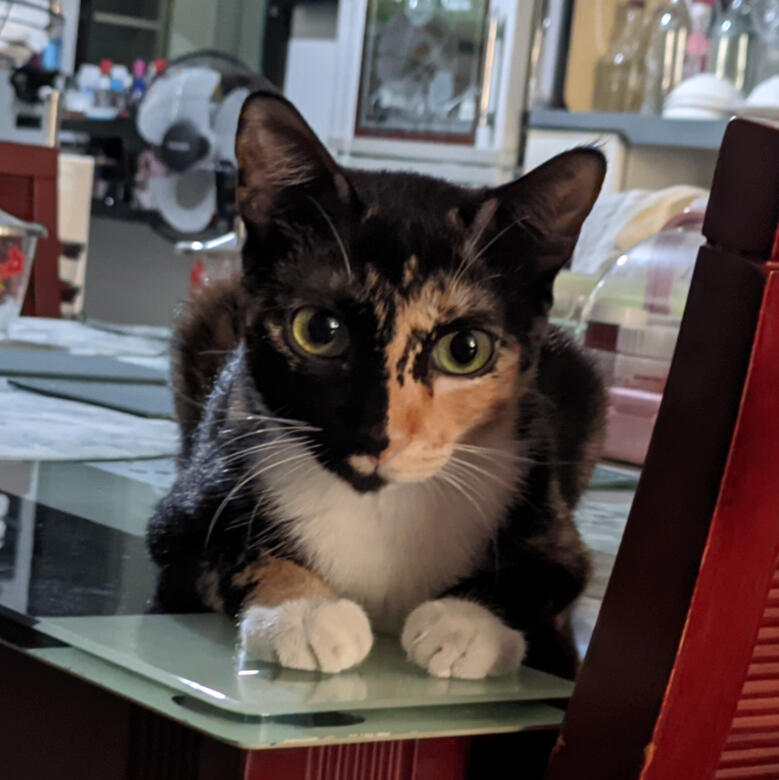 the prettiest girl in the world. her purr is music for sleeping.never forget to take a whiff of her trademark butter popcorn scent. she smells the best out of all of them.very desirable.